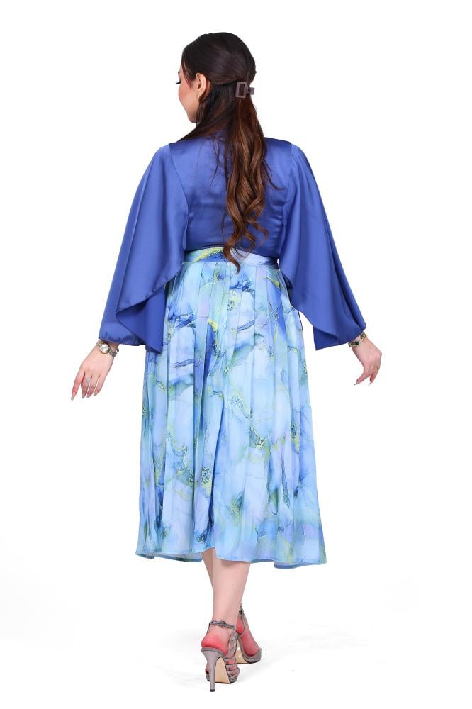 بلوزه لون ازرق مريحة وأنيقة في نفس الوقت. القماش خفيف ويمسك الجسم بشكل مرتاح، تعطيكِ مظهر عصري ومريح في نفس الوقت. مثالية لليوميات أو للخروج مع الأصدقاء، وسهلة التنسيق مع معظم الملابس.