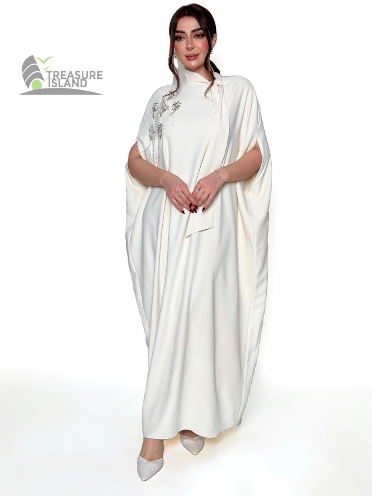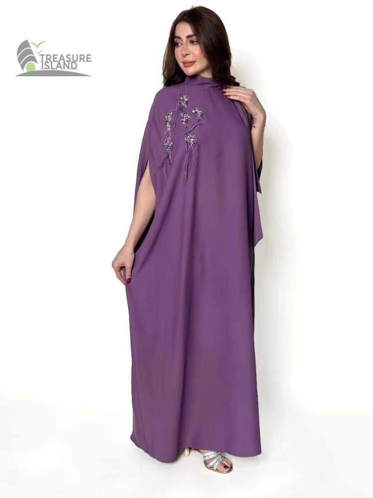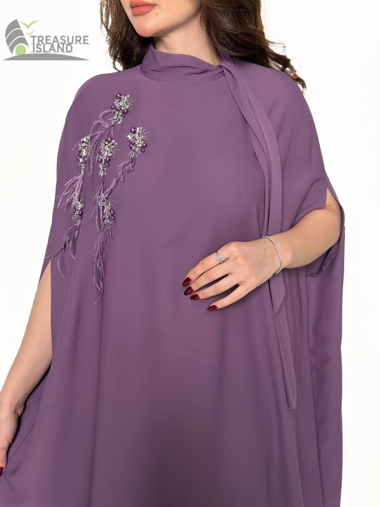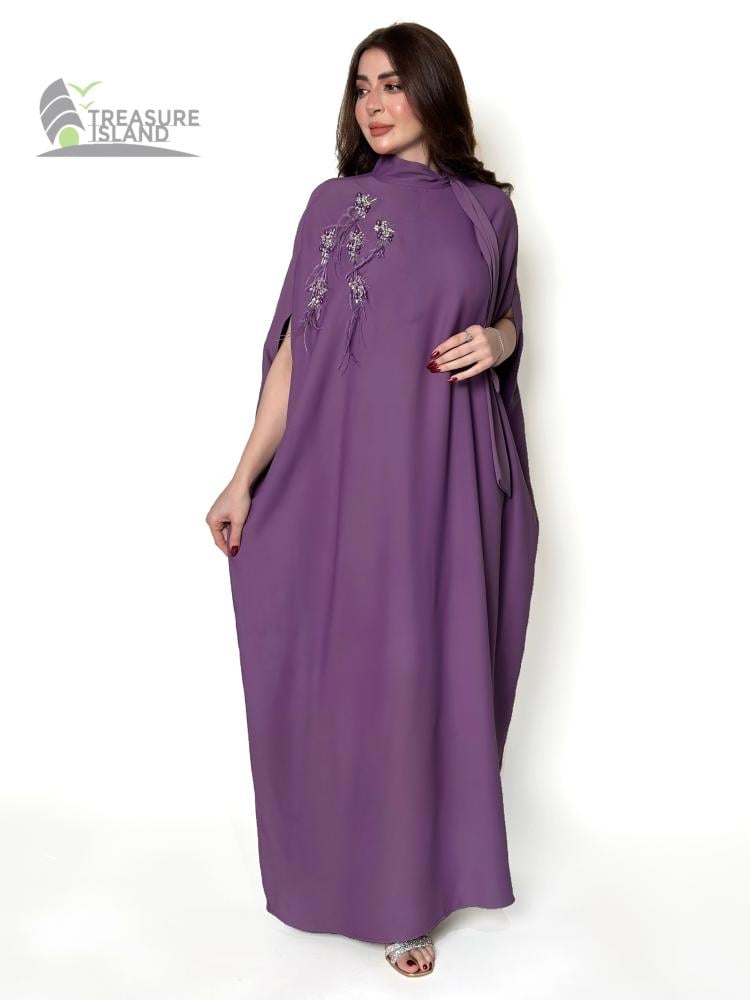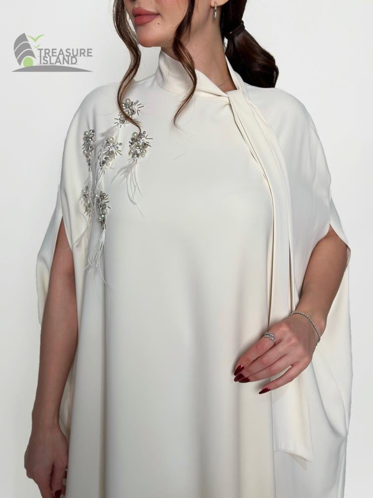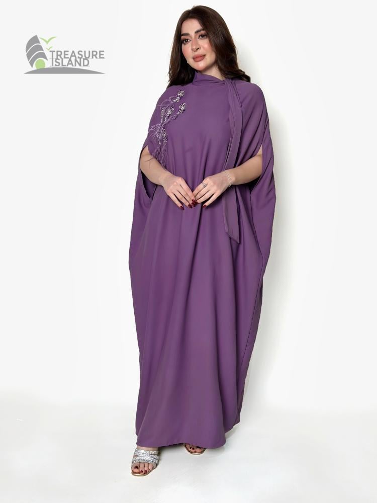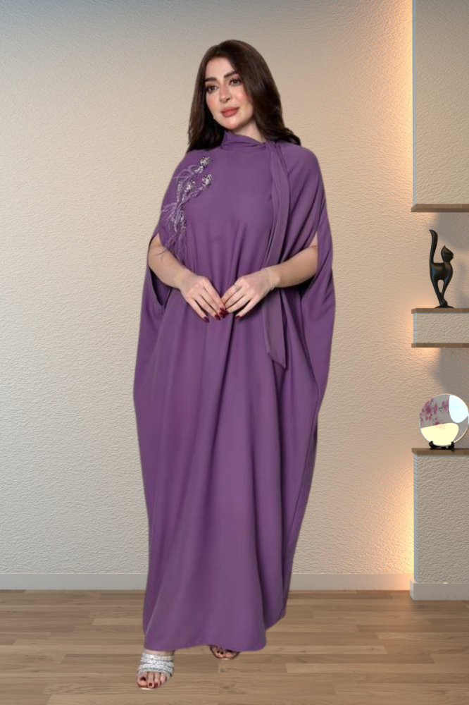 نوع التصميم :جلابية بولستر بلمسة كريستال وريش في الصدر