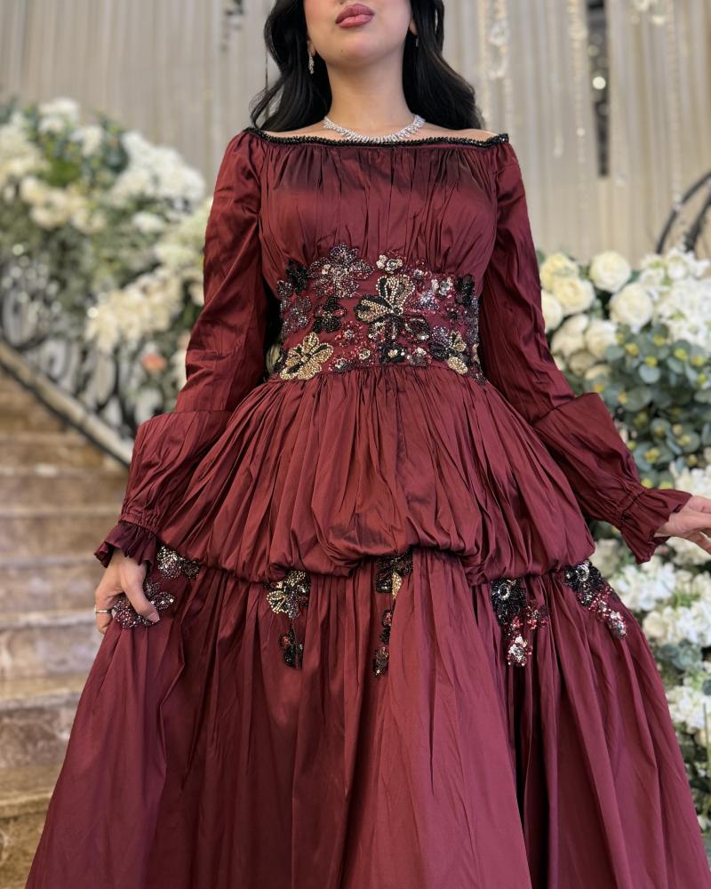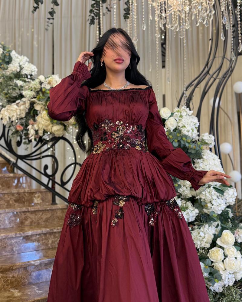 فستان سهرة نبيتي أنيق بتصميم عصري يبرز الأنوثة مصنوع من قماش فاخر يناسب المناسبات الخاصة مريح وملفت للأنظار بقصة مميزة تضفي جاذبية وتألقا مثاليا