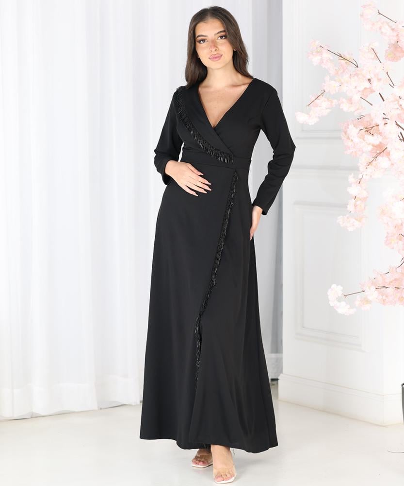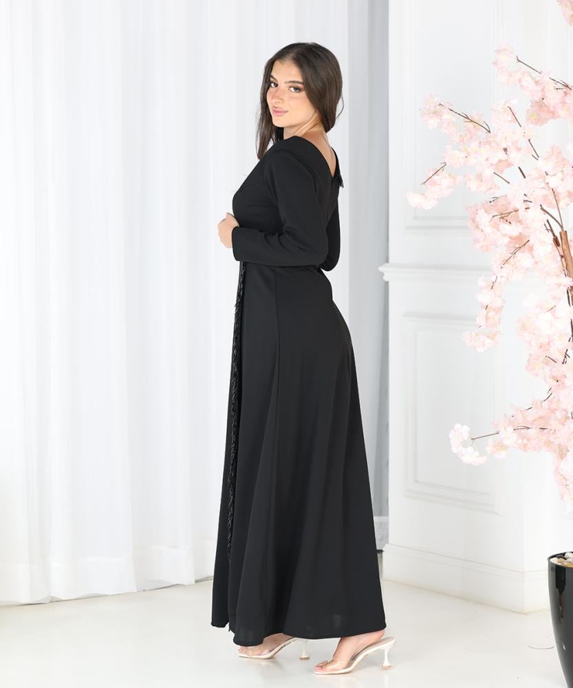 أبهري الكل بإطلالة فريدة مع فساتين كريب سادة اسود أنيق وفخم، يجي بقماش ناعم ومطاطي يضبط الجسم بطريقة راقية. قصته مره مرتبة وتبرز القَوام بشكل جميل، مثالي للمناسبات والسهرات .
