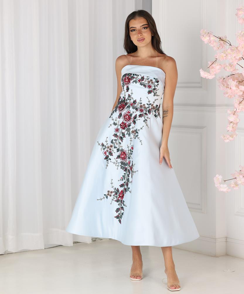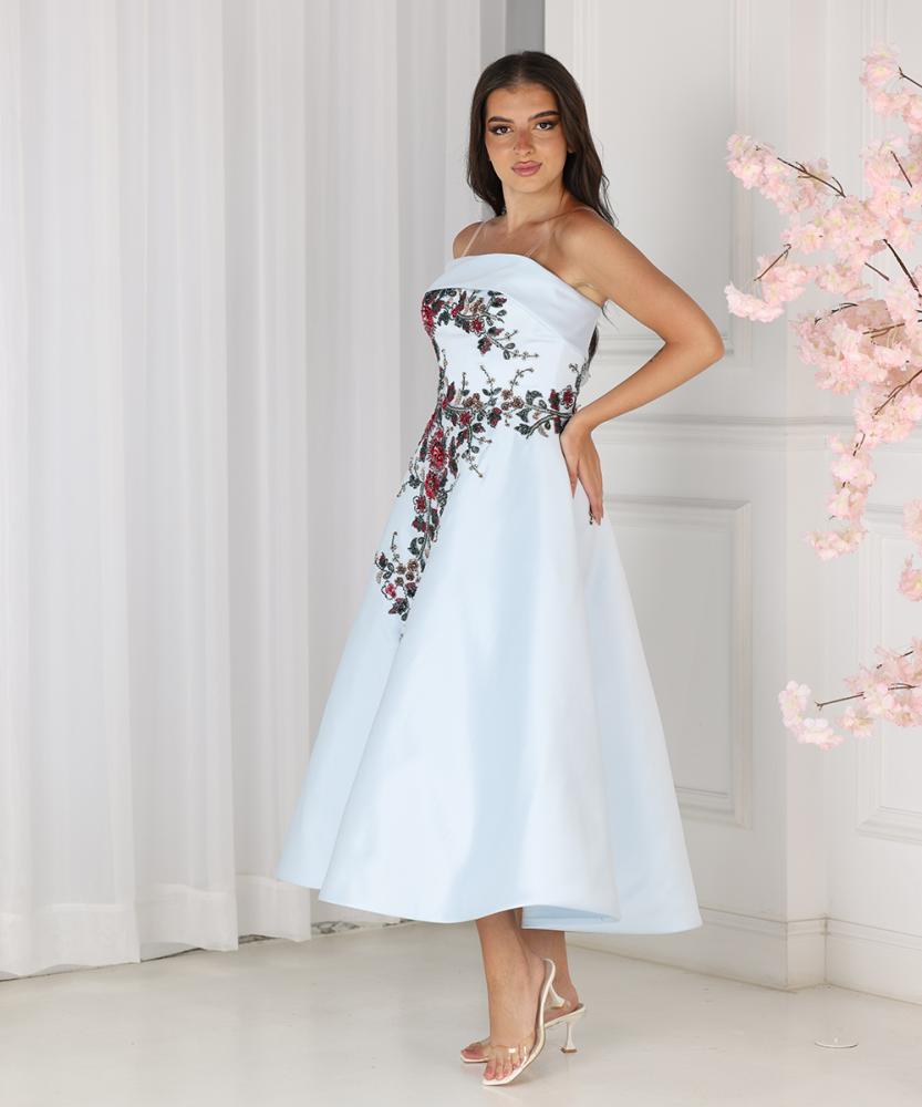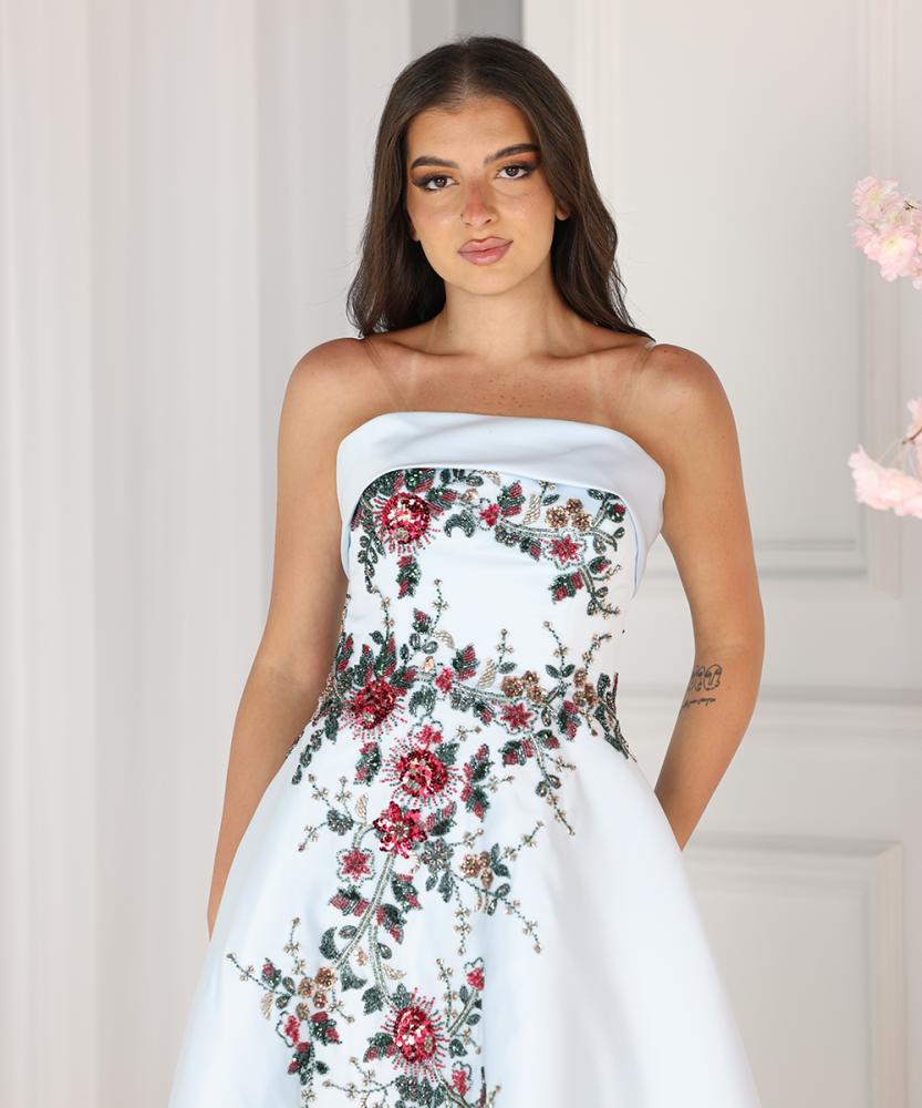 فستان ابيض مطرز أنيق يجمع بين الأناقة والرقي مثالي للمناسبات الخاصة تصميم مريح يبرز جمالك مصنوع من خامات عالية الجودة يضفي لمسة ساحرة على إطلالتك