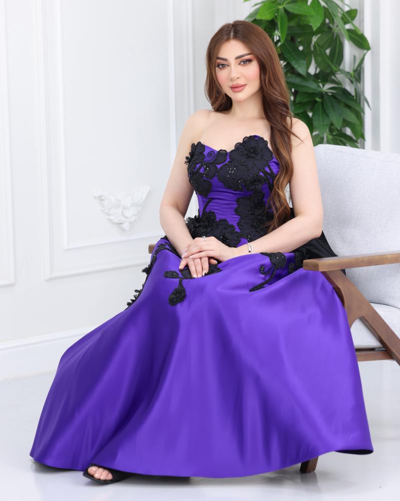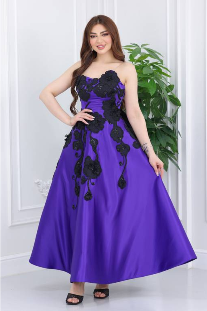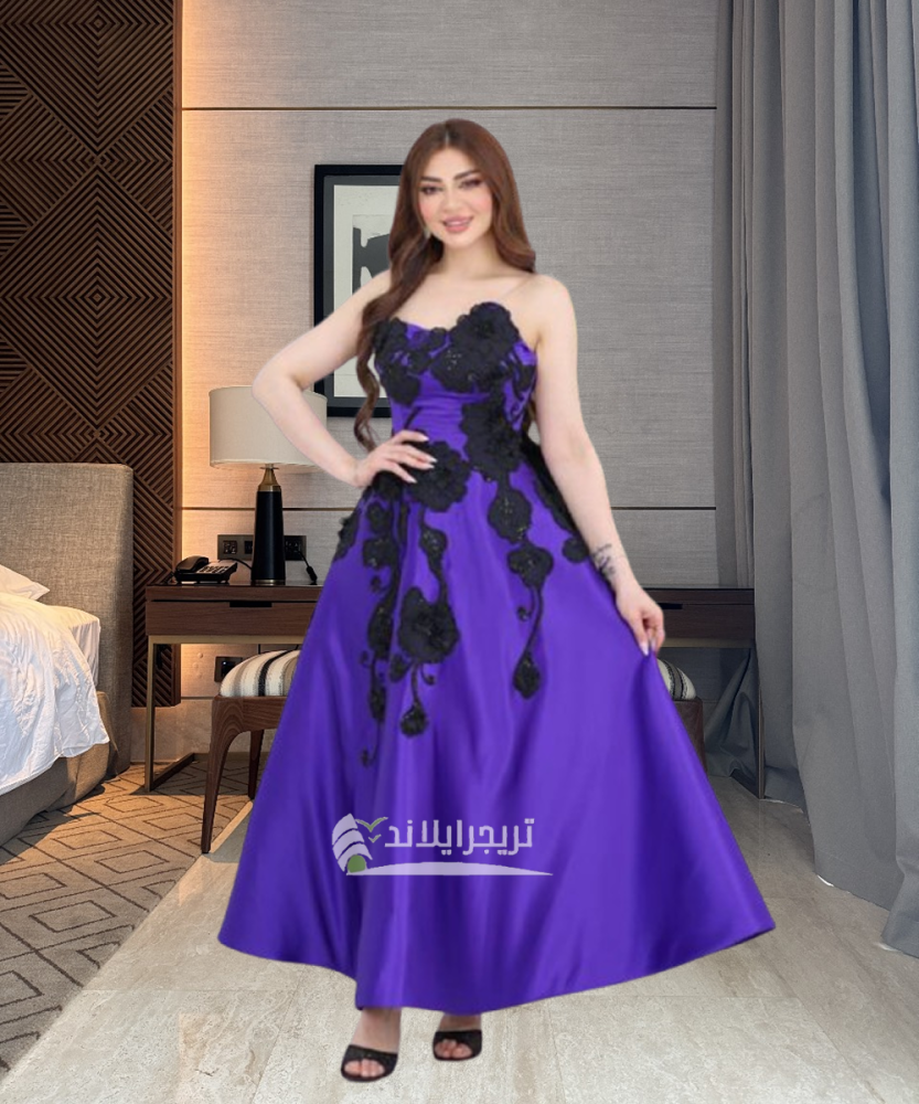 التصميم : مزين بـ تطريزات بورود بارزة.
