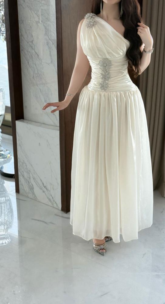 أبهري الكل بإطلالة فريدة مع فستان بيج سواريه فخم وناعم، يجي بلون هادي وأنيق يبرز جمال الطلة قماشه ناعم بيلمع لمعة خفيفة تعطي فخامة بدون مبالغة، والتفاصيل فيه مرتبة سواء تطريز أو قصة انسيابية تبرز الجسم مثالي للمناسبات والسهرات، ويعطي حضور راقي وملفت.
