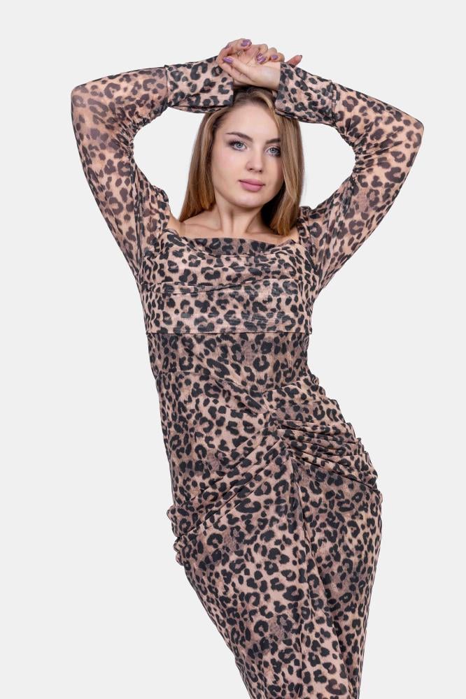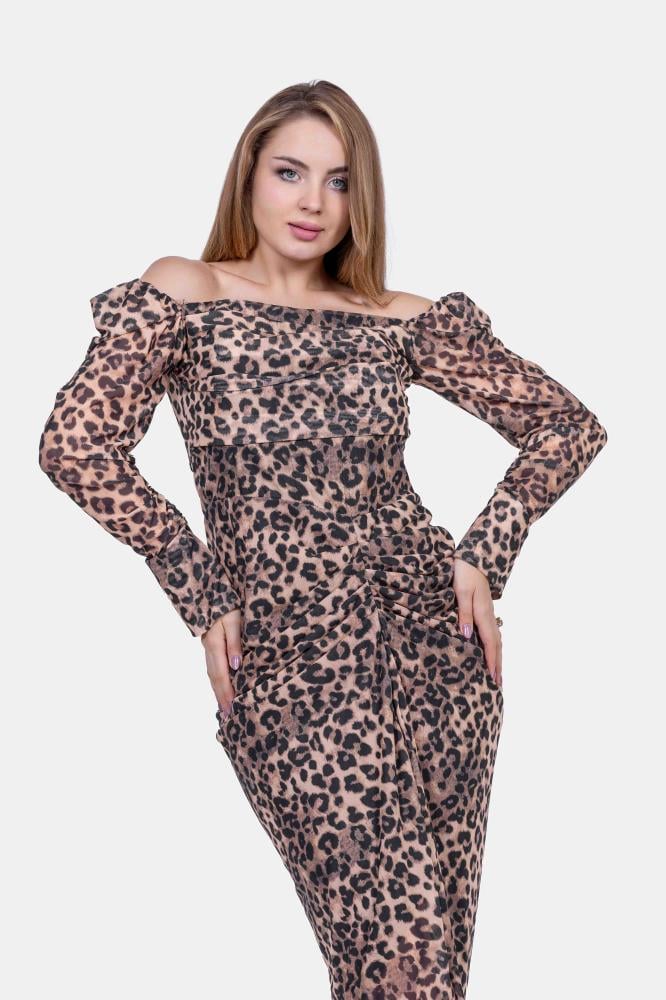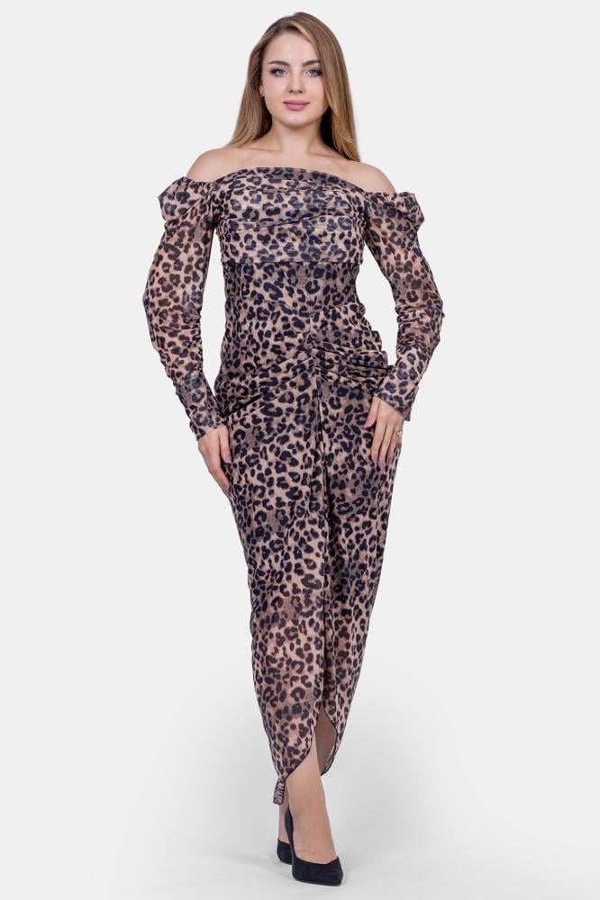 فستان تايجر نمري طويل ماسك اوف شولدر اكمام طويلة