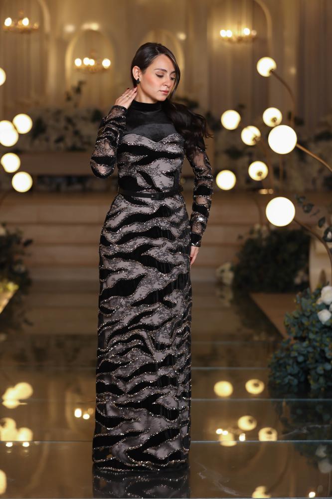 اختاري الفخامة الكلاسيكية مع فستان سهرة من المخمل الأسود يمنحك حضورًا راقيًا لا يُنسى. خامة ناعمة ولمسة فاخرة تبرز أنوثتك بإطلالة أنيقة تناسب السهرات الراقية.