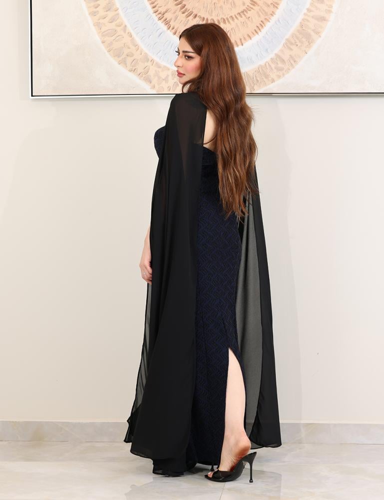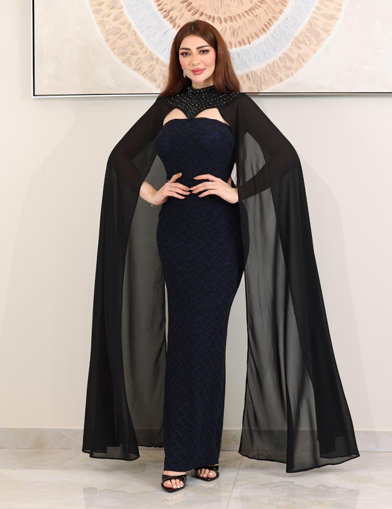 فستان سهرة اسود طويل ناعم بتفاصيل لؤلؤ فاخرة تضيف لمسة رقي وأنوثة، تصميمه أنيق يبرز جمالك بأسلوب راقٍ، مثالي للسهرات والمناسبات الخاصة.