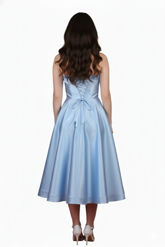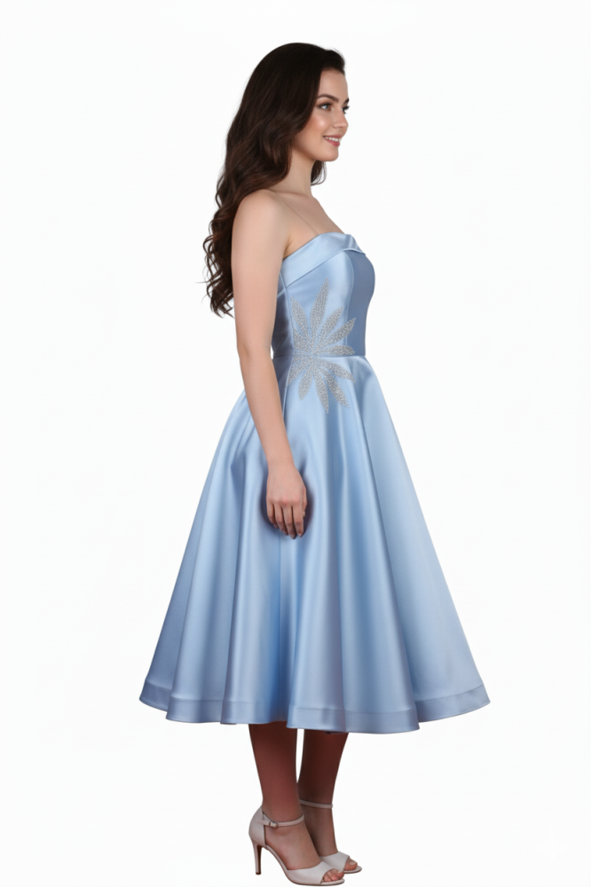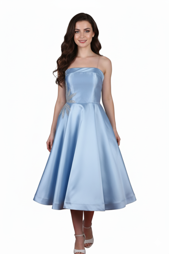 فستان سهرة ميدي بتطريز على الصدر