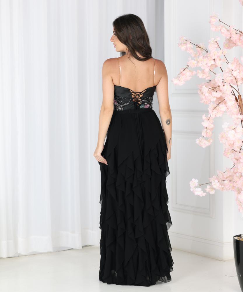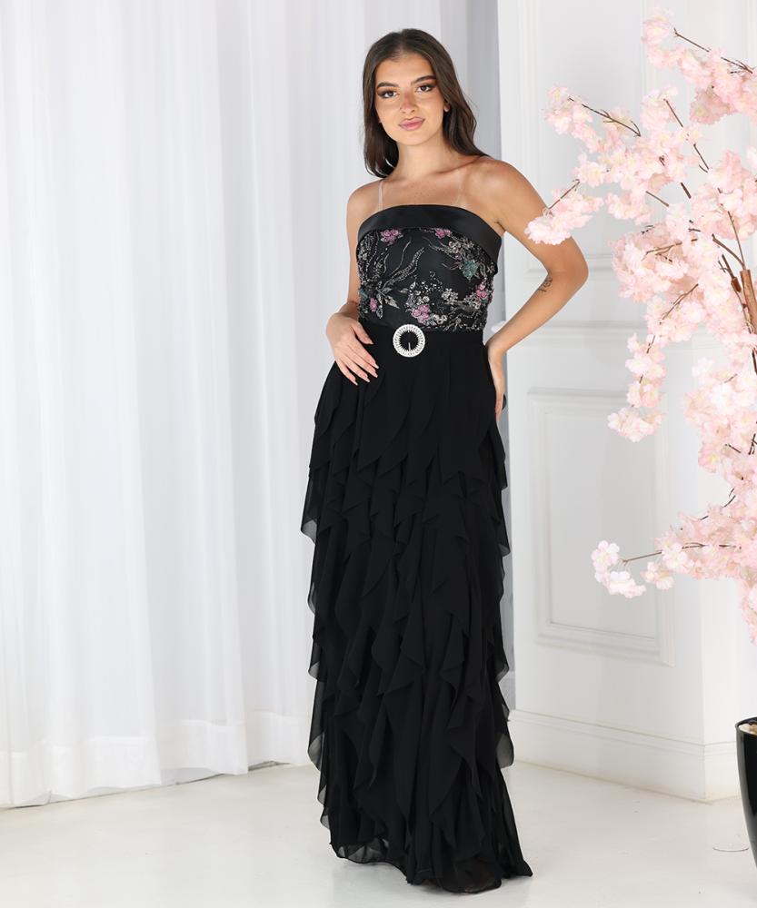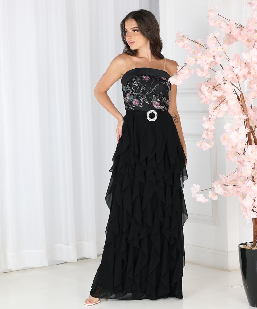 بتفاصيل كشكش متدرجة بطبقات خفيفة من الشيفون تعطي حركة انسيابية ساحرة.