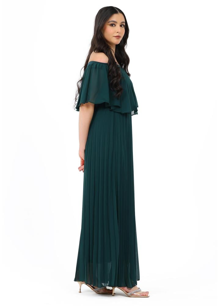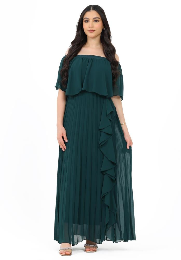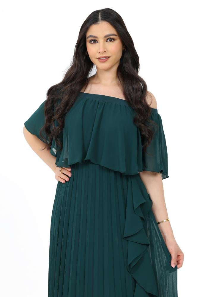 فستان طويل ناعم بأكتاف اوف شولدر