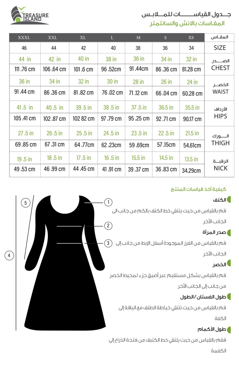 الطول:قياس الطول من الكتف إلى نهاية الفستان.