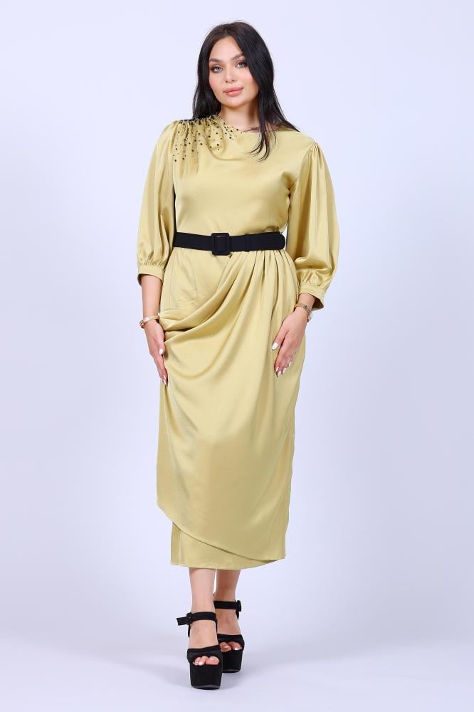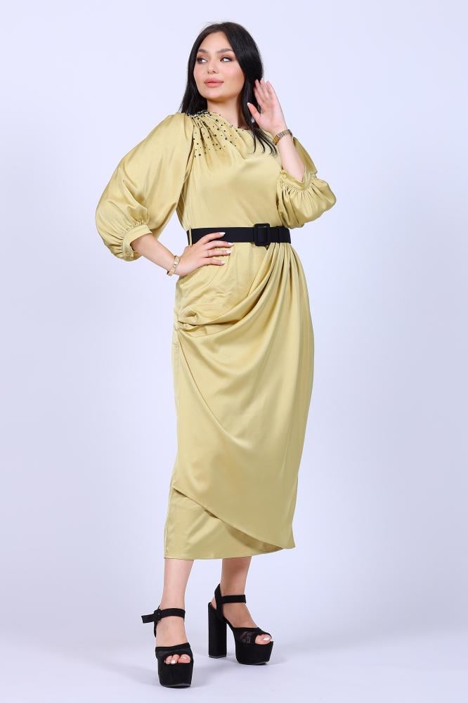 فستان ناعم ميد بكرستال بالكتف
