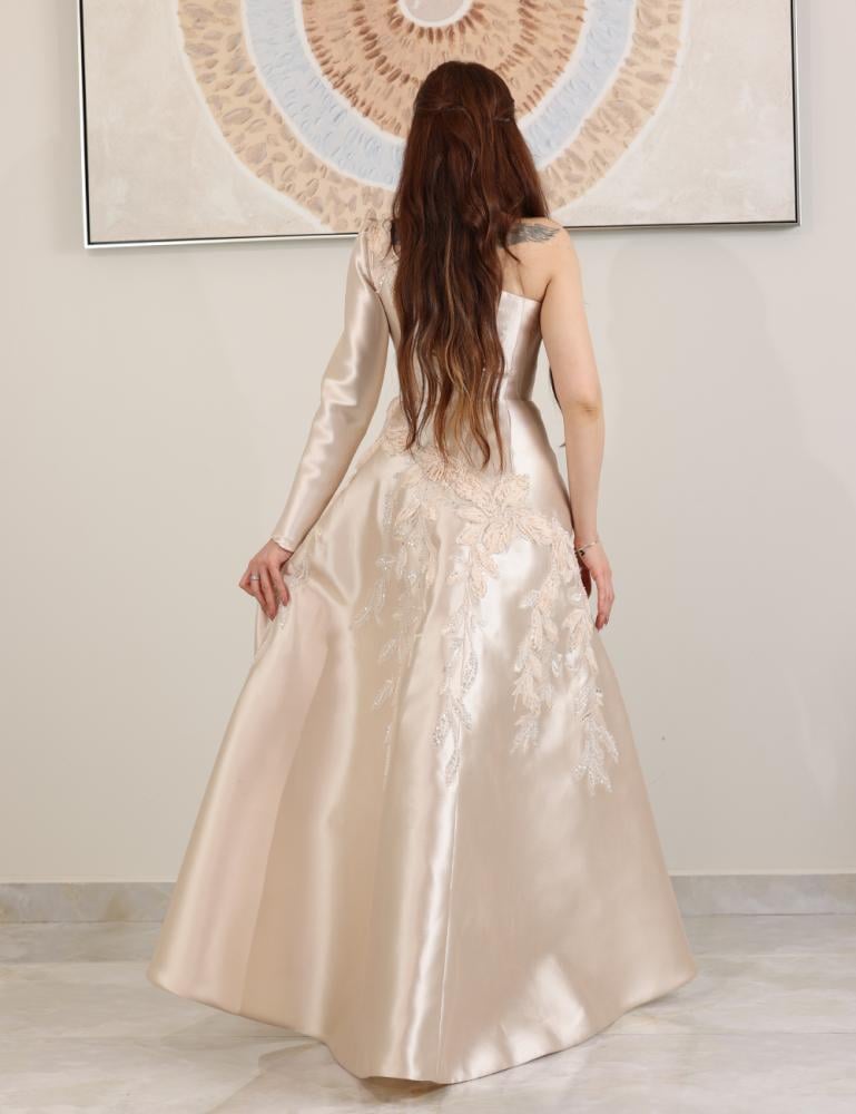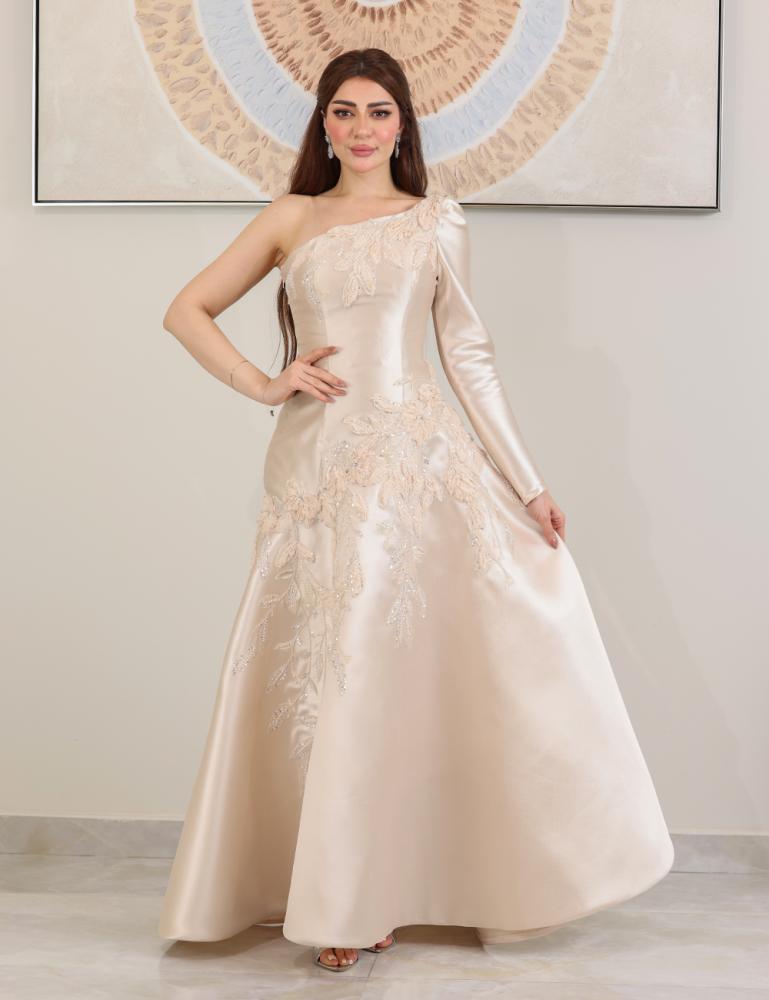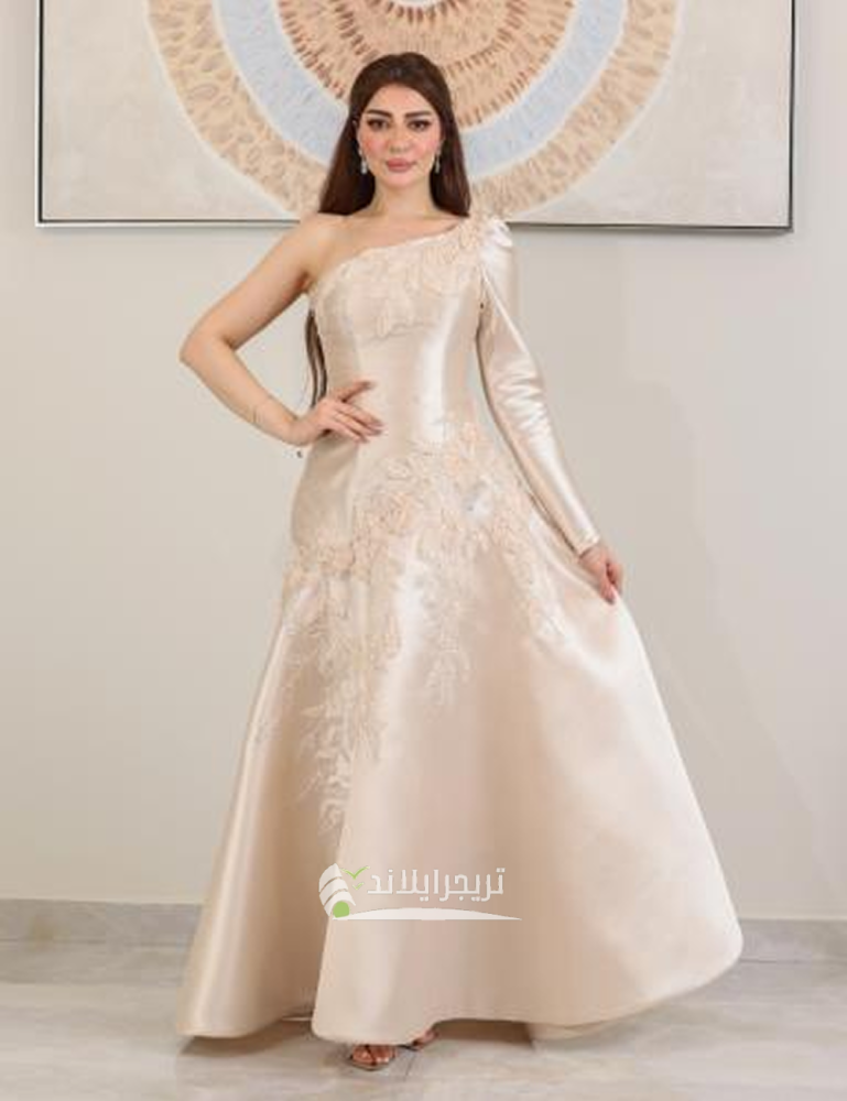 فستان وان شولدر ميكادو سيلين بقصّة مائلة أنيقة، تصميم عصري بلمسة فخامة، يبرز أنوثتك بأسلوب ناعم وجذاب،